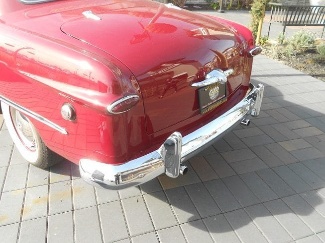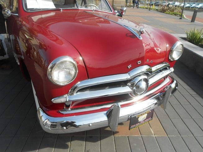 The 1949 Ford was a sleek looking automobile. It was quite different from the fender heavy models before it. It was also known for its horizontal taillights and eye-catching circle on the front grille.