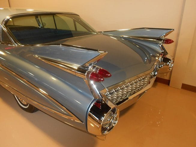 General Motors redesigned their entire line of automobiles in 1959 and Cadillac was redesigned as well. The first thing that stands out with this automobile are the massive tail fins.